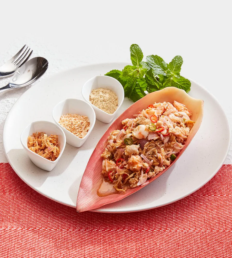 ยำหัวปลีกุ้งสดและอกไก่สับ