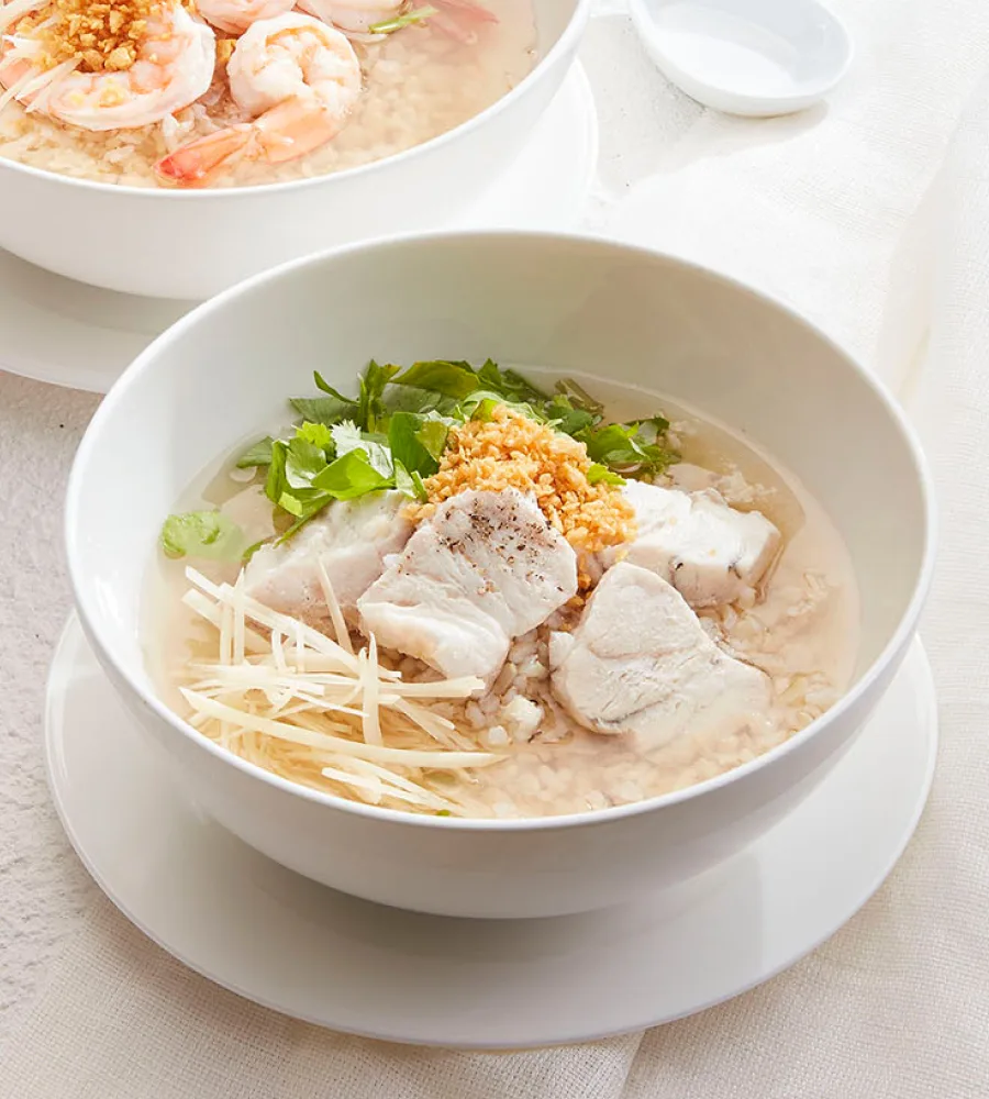 พอร์คชอพ (140g) พร้อมซอสสูตรพิเศษ เสิร์ฟพร้อมโครเกต์มันฝรั่ง ผักลวก หอมผัดเนย ขนมปังสเปลท์ออร์แกนิก