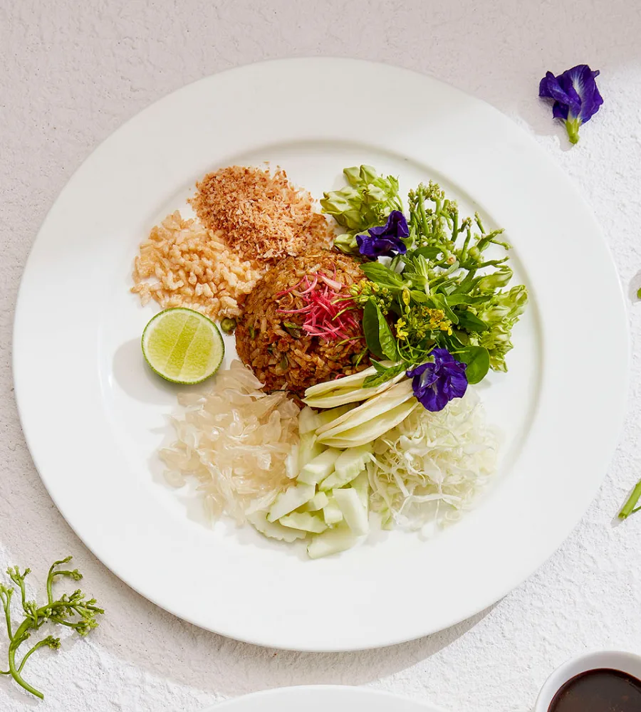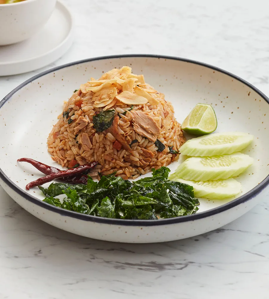 ข้าวกล้องออร์แกนิกผัดปลาสละ กะเพรากรอบทูน่า เสิร์ฟพร้อมซุปผัก
