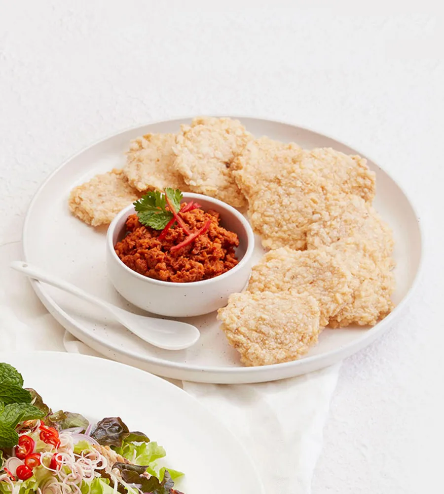 เมี่ยงกระท้อน เสิร์ฟพร้อมข้าวตังออร์แกนิกโฮมเมด